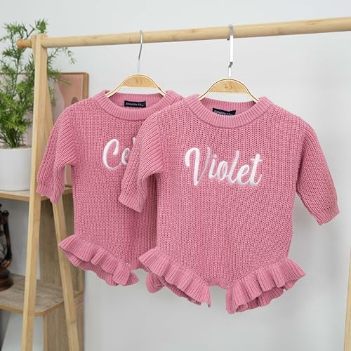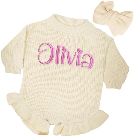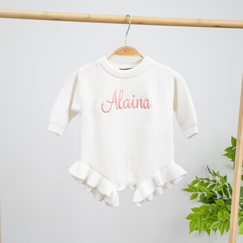 Sponsored Ad - SwaddleAn Personalized Chunky Knit Sweater Romper, Custom Baby Name, Embroidered Baby Outfit, Infant One-Piece Keepsake