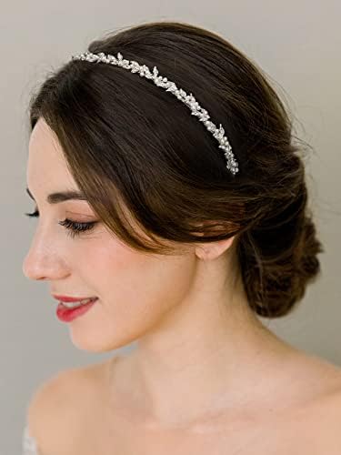 SWEETV Rhinestone Bridal Headband Silver Crystal Tiara for Women Pearl Wedding Headpieces for Bride Hair Accessories for Prom Birthday Party