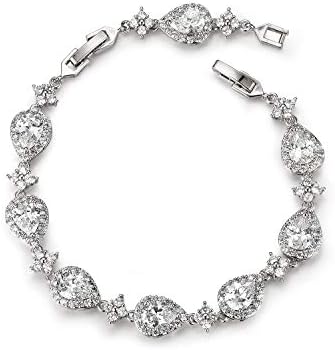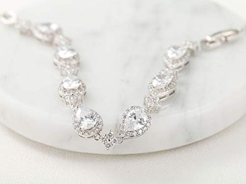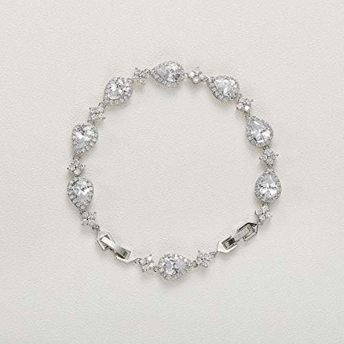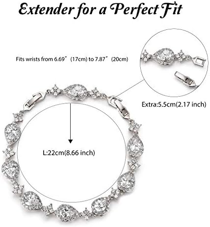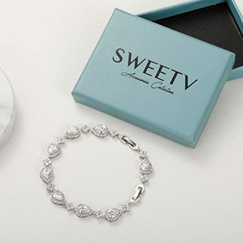SWEETV Wedding Teardrop Bracelets for Brides Bridesmaids, Crystal Cubic Zirconia Bridal Bracelets for Women Prom