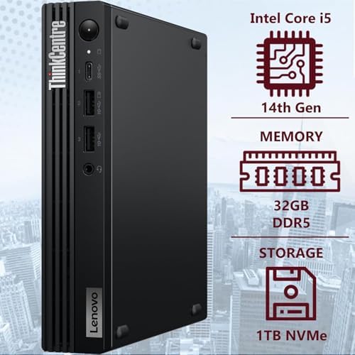 2025 Lenovo ThinkCentre M70q Gen 5 Tiny Business Desktop (Intel 10-Core i5-14400T (> i7-13700T), 32GB DDR5, 1TB SSD, UHD Graphics 730) MFF, Mini PC, DisplayPort, Ethernet, HDMI, 3-Yr WRT, Win 11 Pro