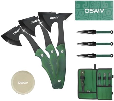 Throwing Axes Set, Full Tang Stainless Steel Well Balanced Hatchet with Wooden Handle, 8.8in Double Bit Axe for Backyard Recreation and Competition, 3 Pack with Storage Bag and Whetstone