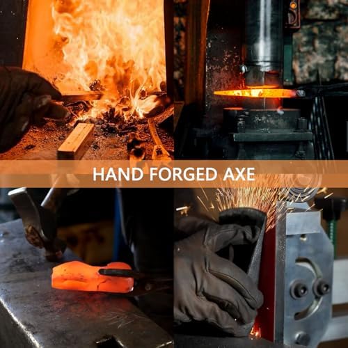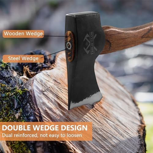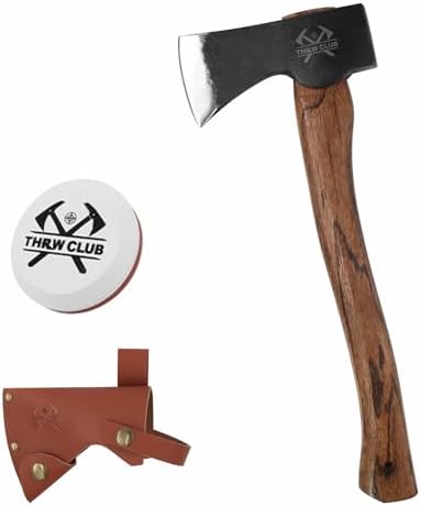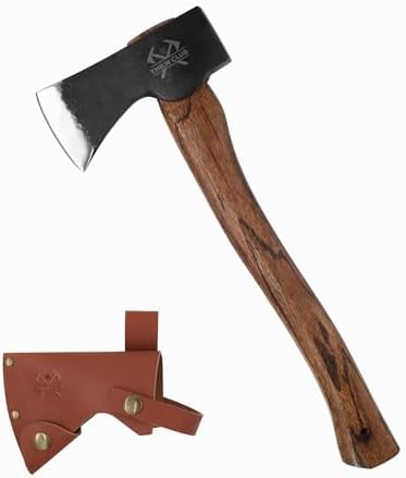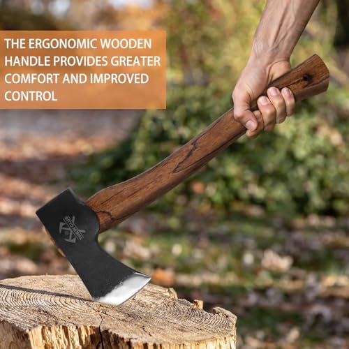 15.7" Hand Forged Hatchet Axe, Camping Hatchet with 1065 Carbon Steel & Wooden Handle, Bushcraft Axe with Leather Sheath and Axe Sharpener, Survival Axe for Outdoor Adventures and Gardening