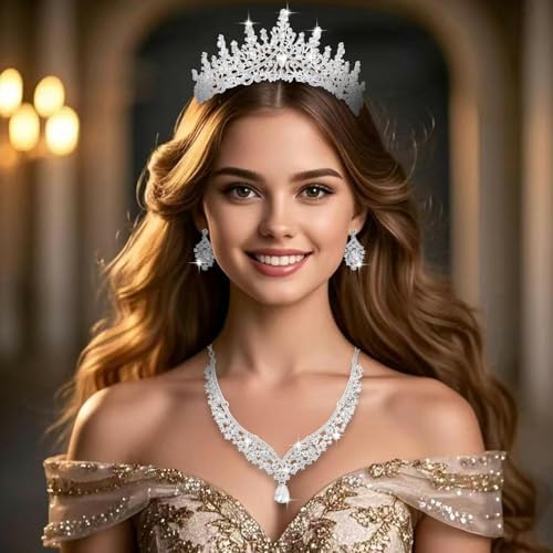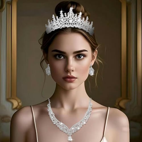 Sponsored Ad - Tiaras and Crowns for Women,Tiaras Earrings Necklace, Crystal Bridal Jewelry Set