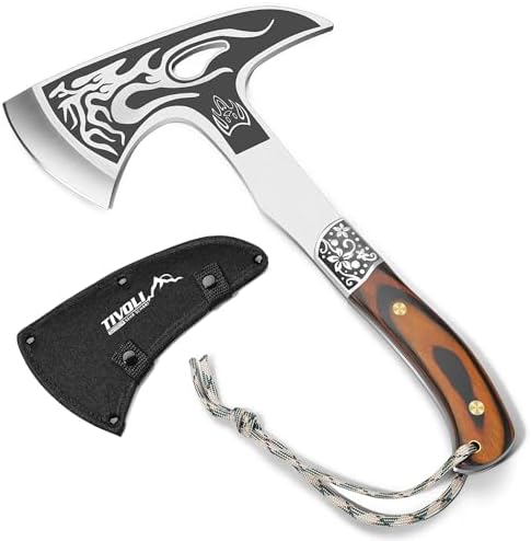 TIVOLI 12.2" Camping Axe, Flame - Patterned Survival Hatchet with Nylon Sheath, High Carbon Steel Blade & Comfortable Ergonomic Wood Grip, Outdoor Bushcraft Axe for Camping, Hiking, Chopping, Hunting