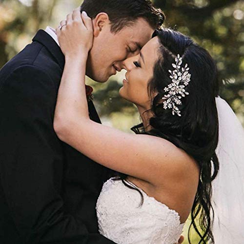 Unsutuo Crystal Bride Wedding Hair Comb Silver Rhinestone Flower Bridal Hair Pieces Pearl Wedding Hair Accessories for Women and Girls… (Gold)