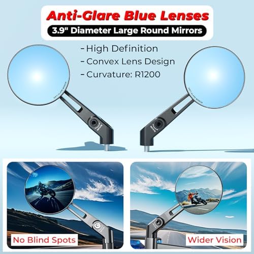 Sponsored Ad - Aluminum Alloy Rainproof Foldable Motorcycle Mirrors with M8 M10 Bolts, CNC Machined Anti-Glare Blue Lenses Rear View Mirrors, Multi-Angle Adjustable for Motorcycle ATV Moped Scooter Cr