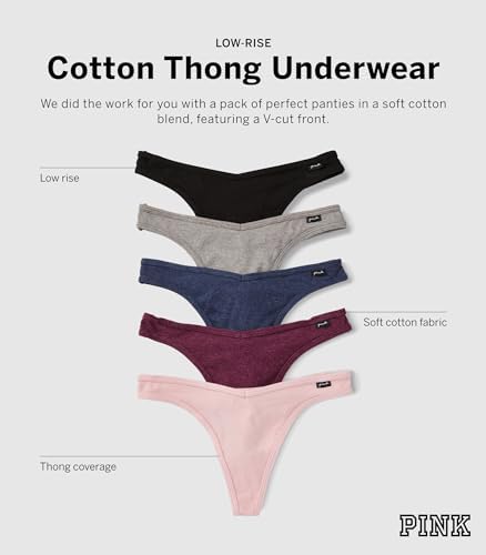 PINK Women's Cotton Thong Underwear, Panties for Women, Pink Basic, (M)