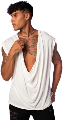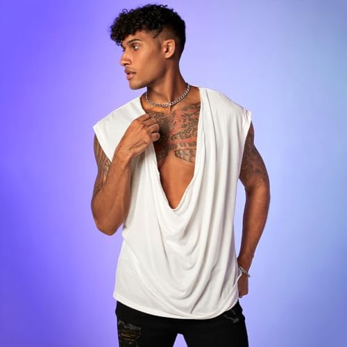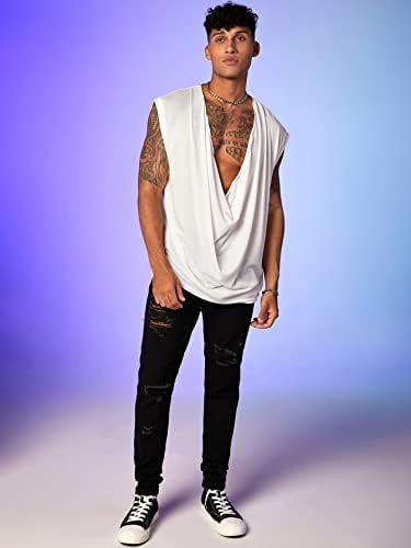 Men's Cowl Neck Draped Cap Sleeve Tank Top Summer Casual T Shirt Tops
