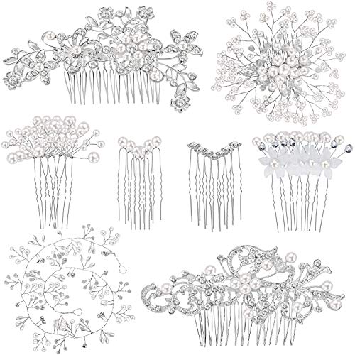 Maitys 44 Pieces Wedding Hair Accessories Faux Pearl Crystal Comb Clips U-shaped Flower Rhinestone Silver Pearl Hair Pieces for Prom Bride Bridesmaid (Classic Style)