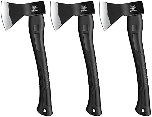 Throwing Axe - 3 Pack, 15-inch Camping Hatchet, Carbon Steel Splitting Axe, Fiberglass Handle, with Anti-Slip & Shock Reduction Grip for Axe Throwing, Kindling, Chopping, and Wood Splitting