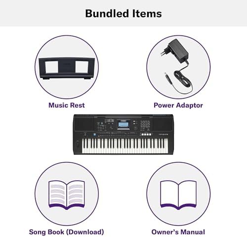 61-Key Touch-Sensitive Advanced Portable Keyboard with Music Rest and Power Adapter, (PSRE473)