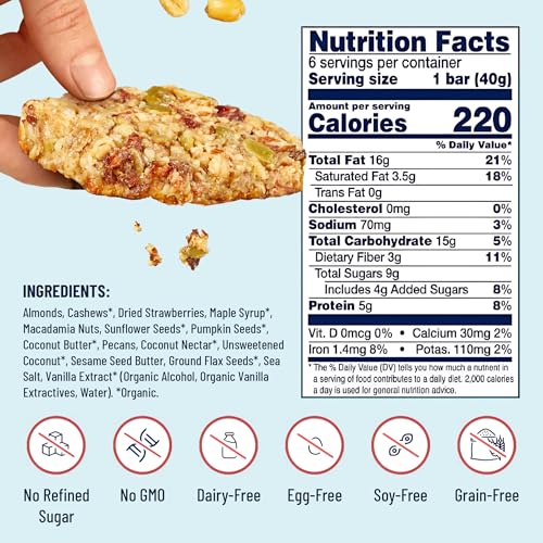 Sponsored Ad - Strawberry Coconut – Plant Based Protein, Decadent Snack Bar – Vegan, Paleo, Gluten Free, Dairy Free, Low Sugar, Healthy Snack, Breakfast, Low Carb, Keto Friendly (Pack of 6)